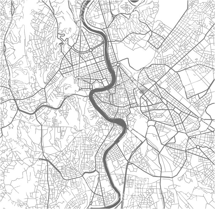 Magnetická mapa Říma, ilustrovaná, černo-bíla
