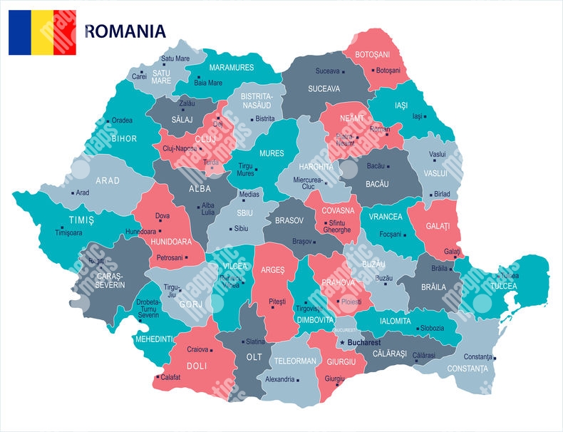 Magnetická mapa Rumunska, ilustrovaná, barevná