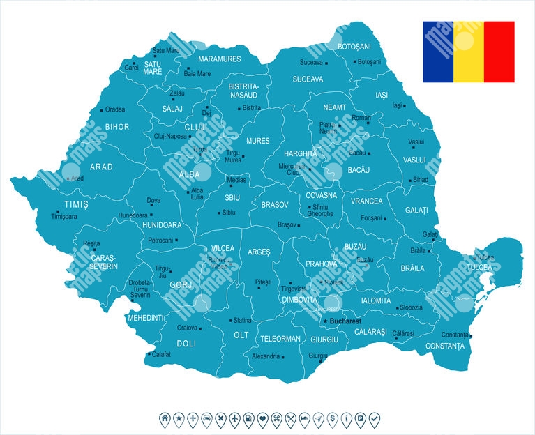 Magnetická mapa Rumunska, ilustrovaná, modrá