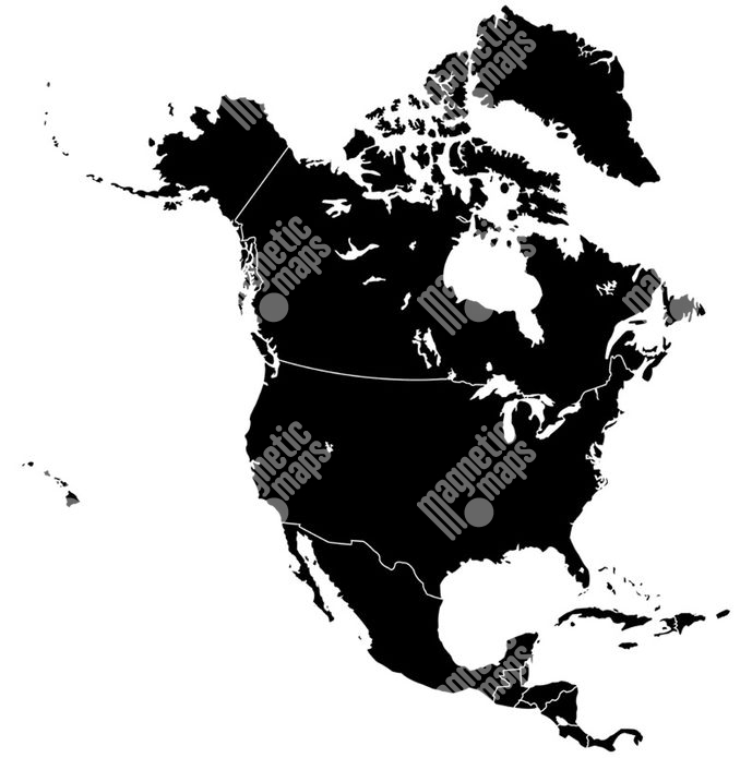 Magnetická mapa Severní Ameriky, ilustrovaná, černá