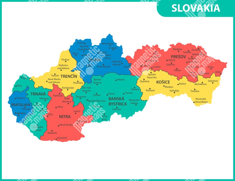 Magnetická mapa Slovenska, ilustrovaná, barevná