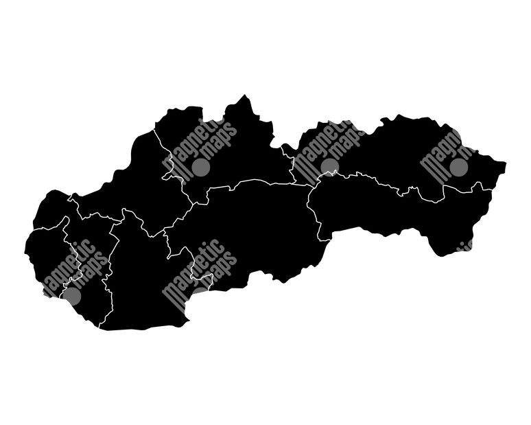 Magnetická mapa Slovenska, ilustrovaná, černá