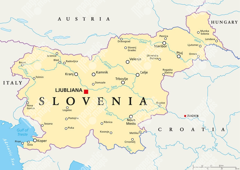 Magnetická mapa Slovinska, politická, béžová