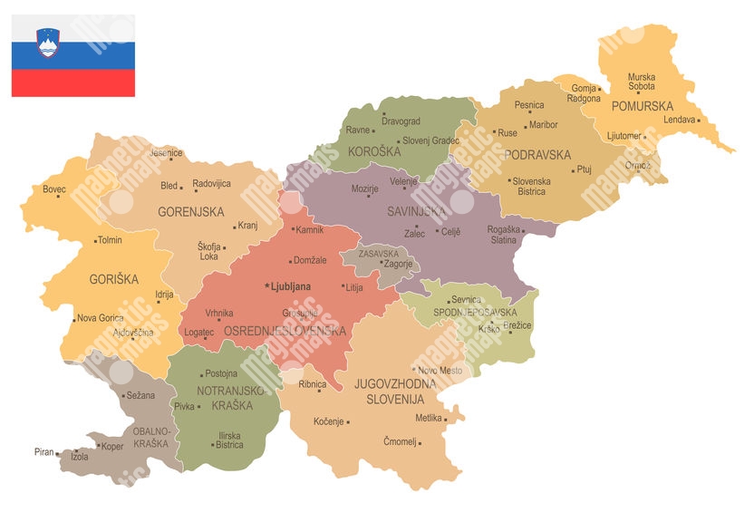 Magnetická mapa Slovinska, vintage, detailní