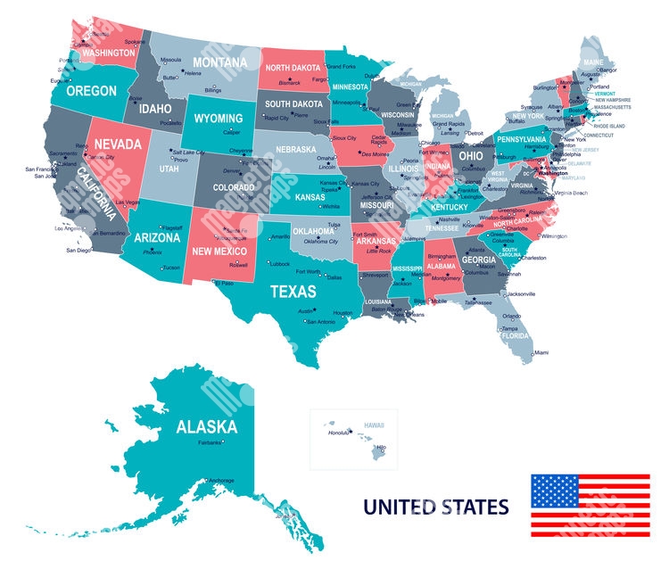 Magnetická mapa Spojených států Amerických, ilustrovaná, barevná