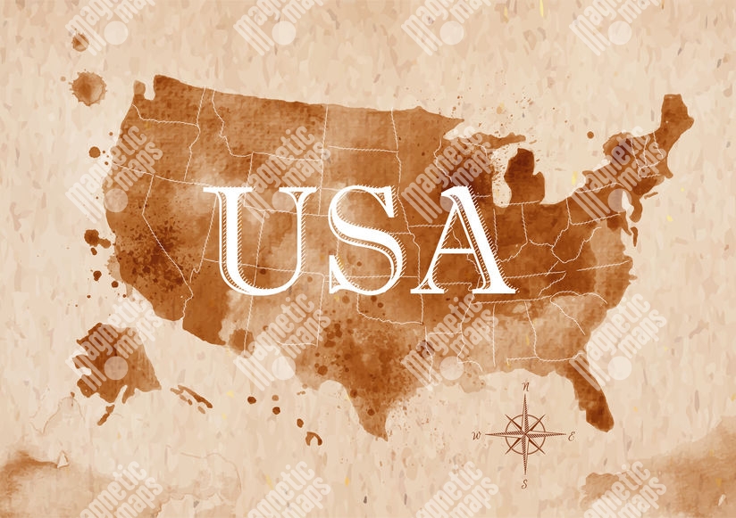Magnetická mapa Spojených států Amerických, watercolor, hnědá