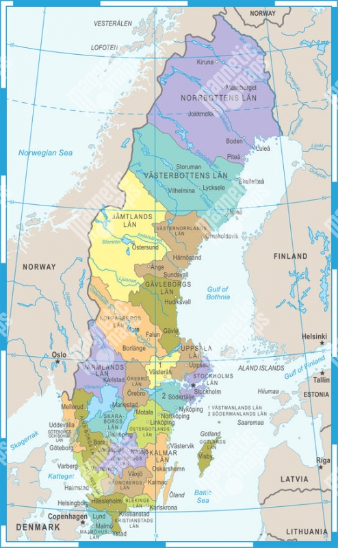 Magnetická mapa Švédska, vektorová, barevná