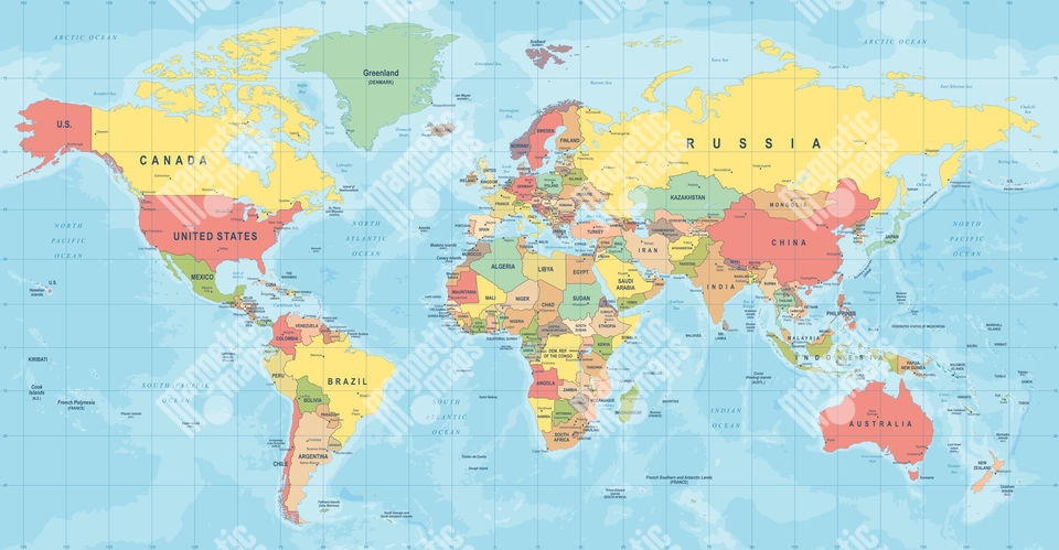 Magnetická mapa Světa, ilustrovaná, barevná