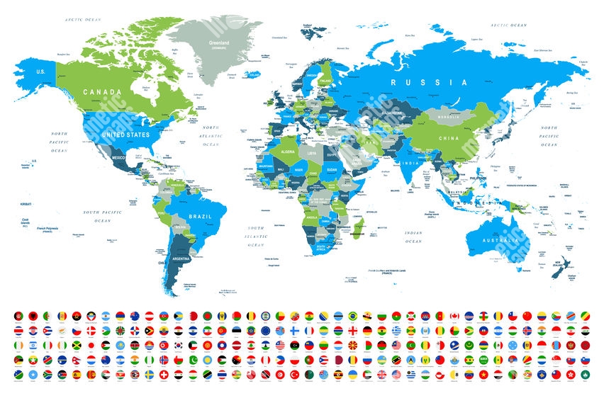 Magnetická mapa Světa, ilustrovaná, s vlajkama
