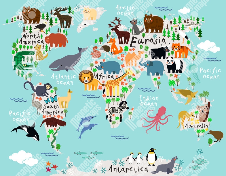 Magnetická mapa Světa, ilustrovaná, zvířata