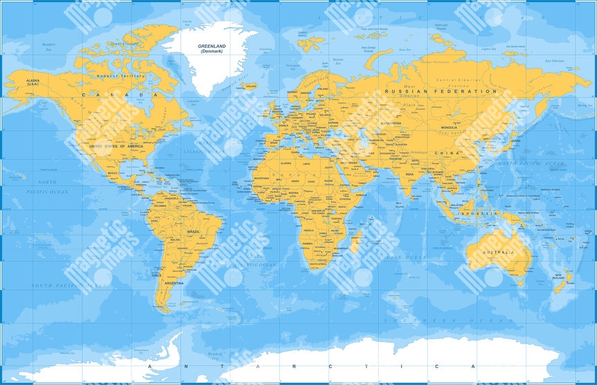 Magnetická mapa Světa, politická, žluto-modrá