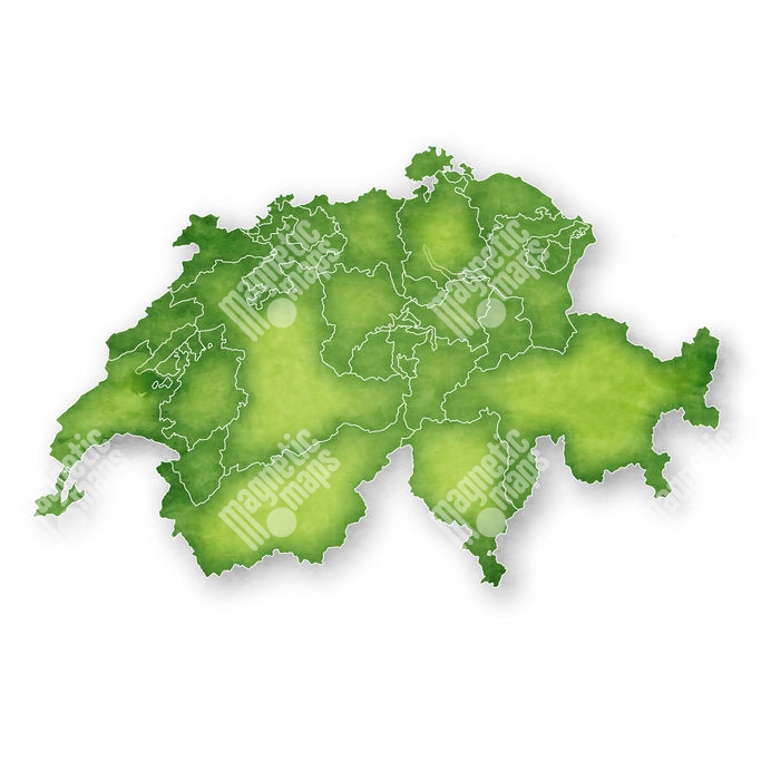 Magnetická mapa Švýcarska, ilustrovaná, zelená