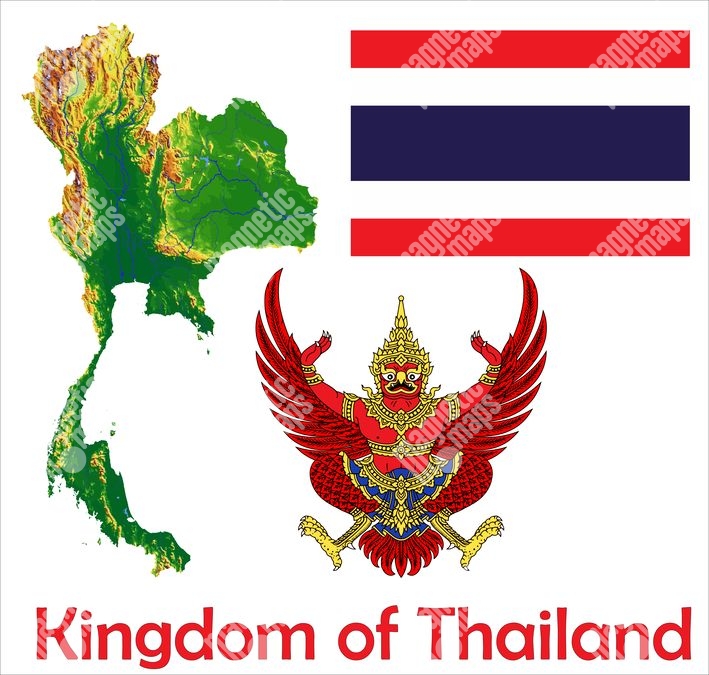 Magnetická mapa Thajska, geografická, reliéfní