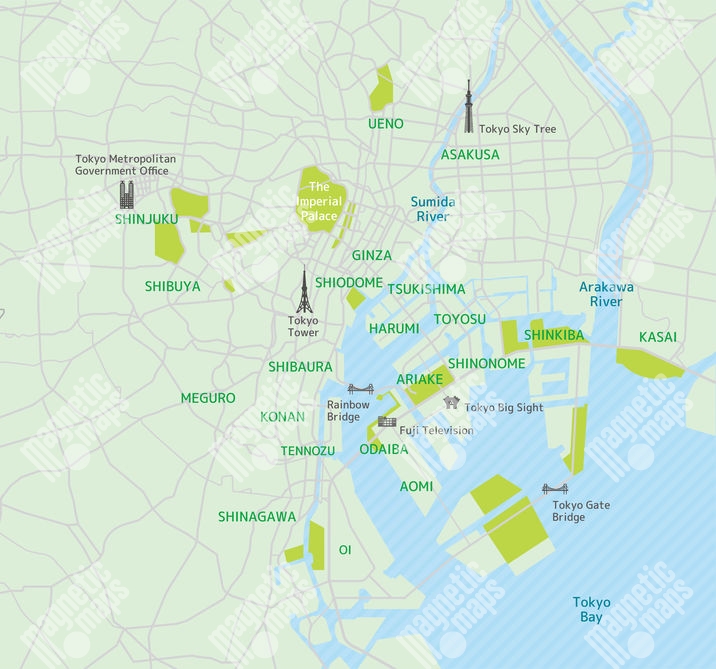 Magnetická mapa Tokia, ilustrovaná, barevná