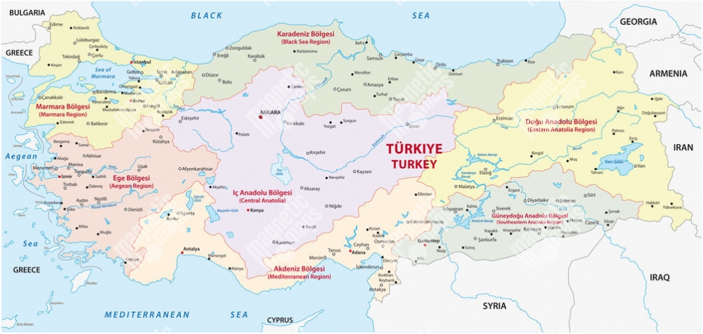 Magnetická mapa Turecka, administrativní, barevná