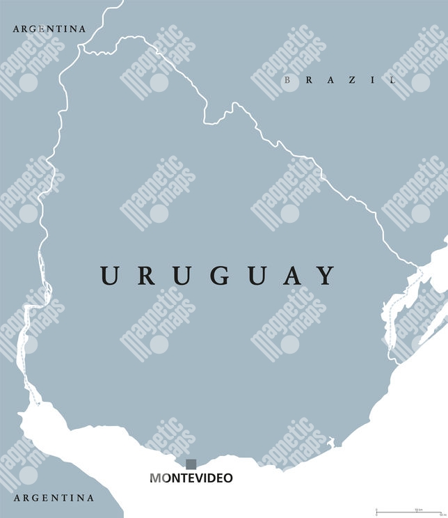 Magnetická mapa Uruguay, ilustrovaná, šedá