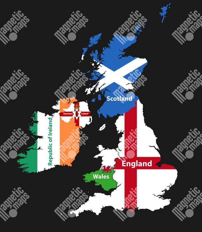 Magnetická mapa Velké Británie, ilustrovaná, barevná