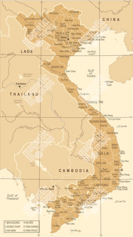 Magnetická mapa Vietnamu, vintage, hnědá